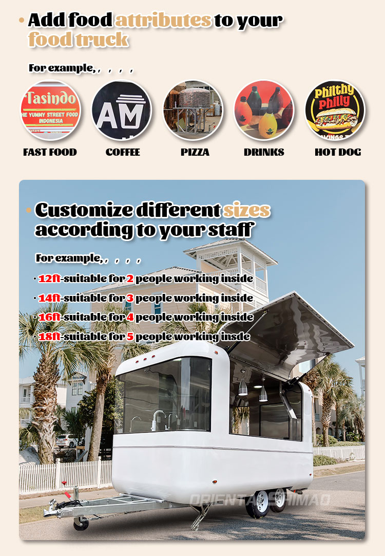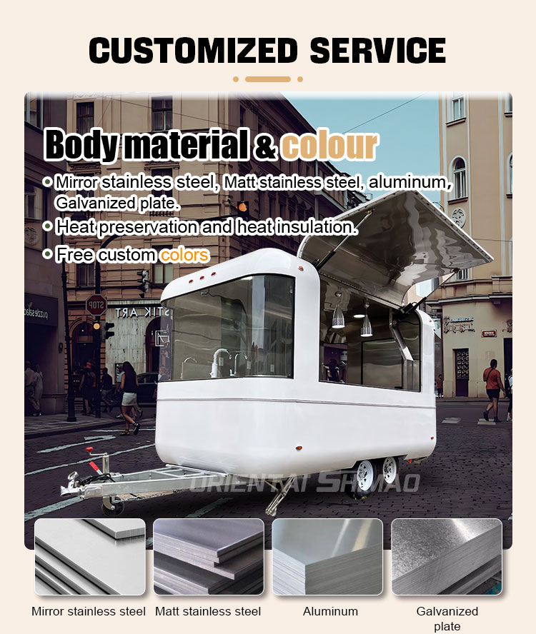 Modellering och stil: utseendemodelleringen och stilen på foodtrucken är en viktig faktor för att locka kunder. Den kan anpassas efter kundernas varumärkesimage, affärsegenskaper eller personliga preferenser, såsom strömlinjeformad design, retrostil, modern enkelhet och så vidare.