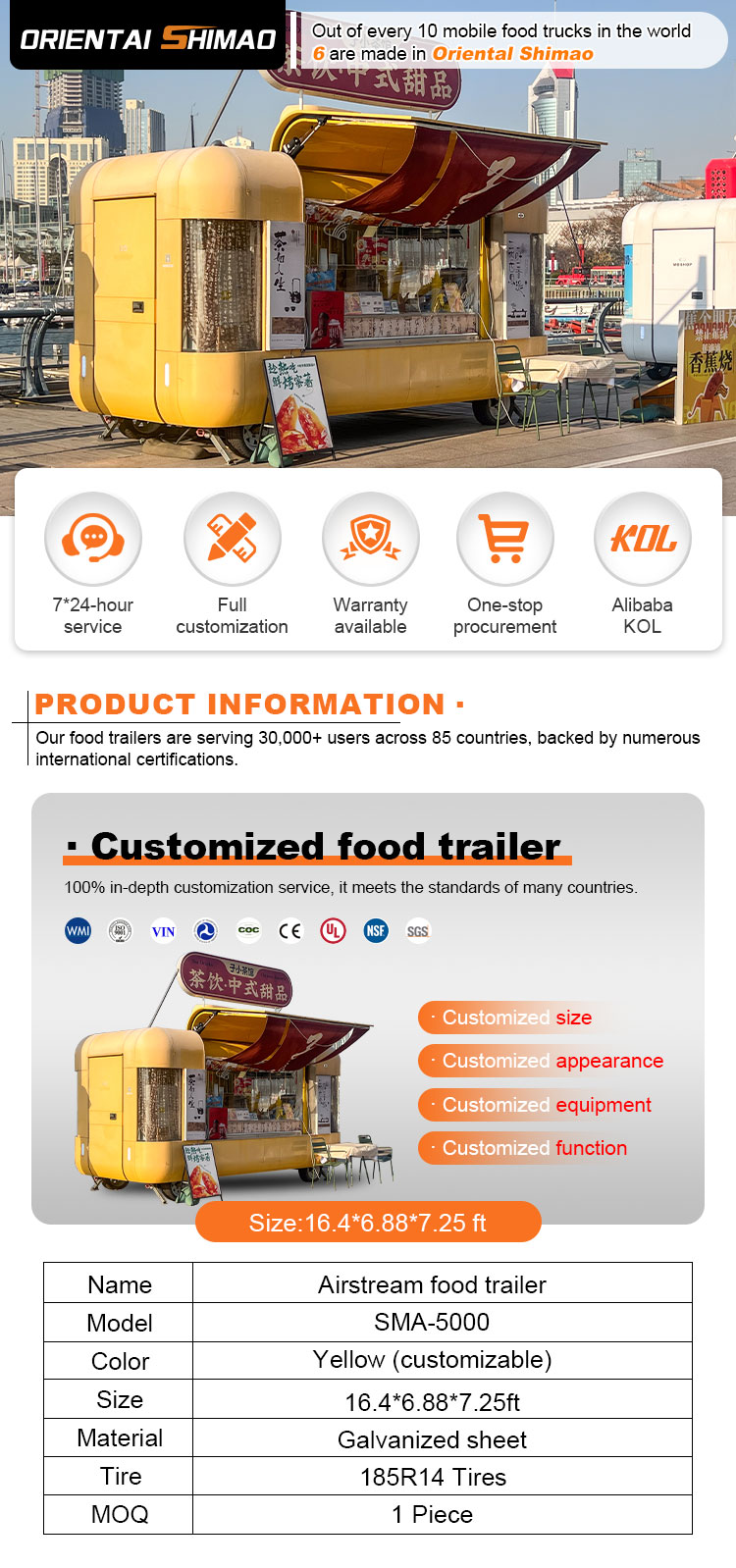 Vi kan erbjuda kaffevagnsmobilcertifieringar: DOT,CE,SGS,SCI,ISO,COC,