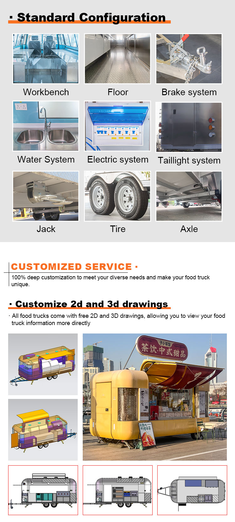 Matvagn Mobilt Kök Kommersiell Restaurangutrustning Catering Elektrisk Mat Trailer Gatubruk Food Truck