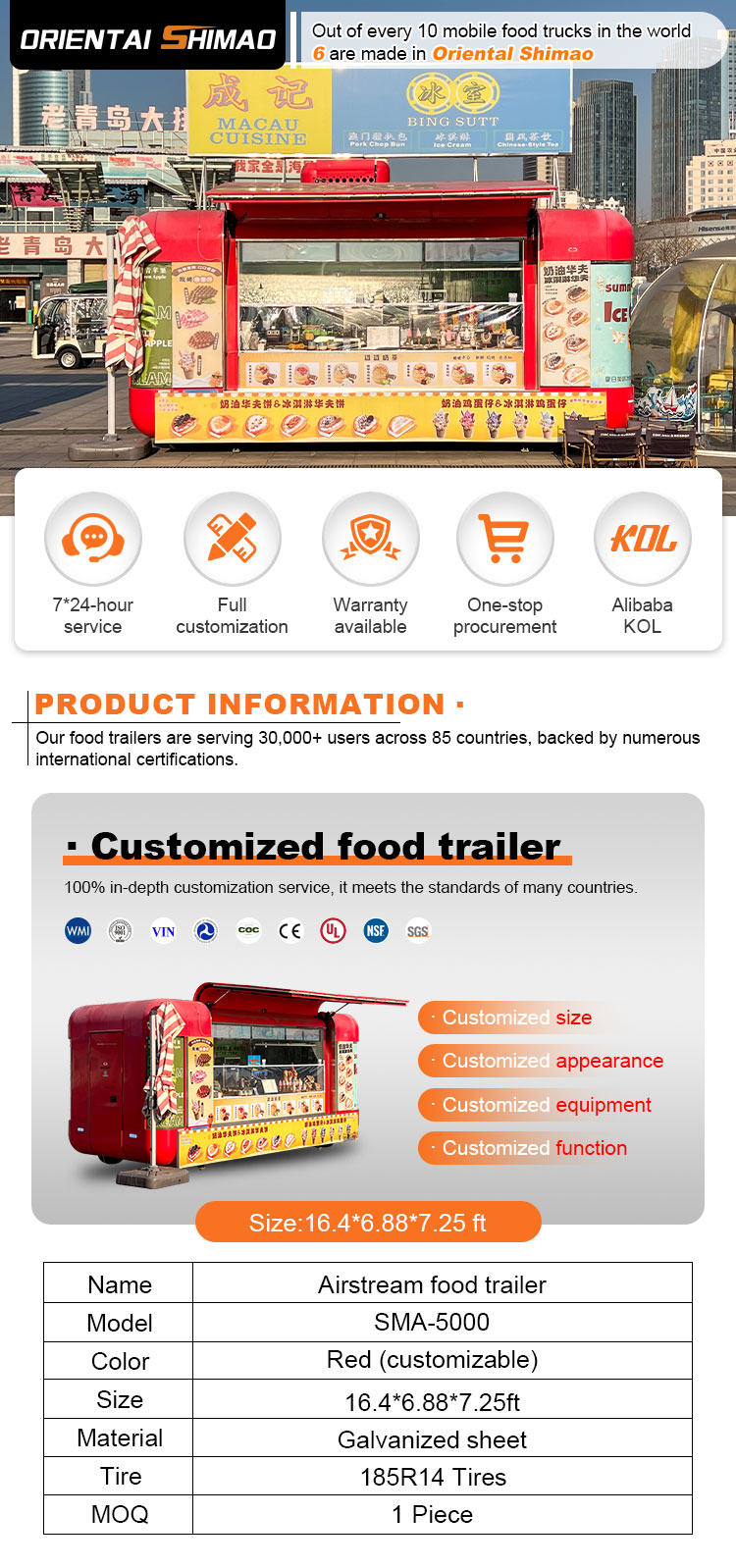 Vi kan erbjuda Food Catering Trailers certifieringar: DOT, CE, SGS, SCI, ISO, COC,