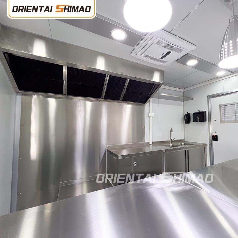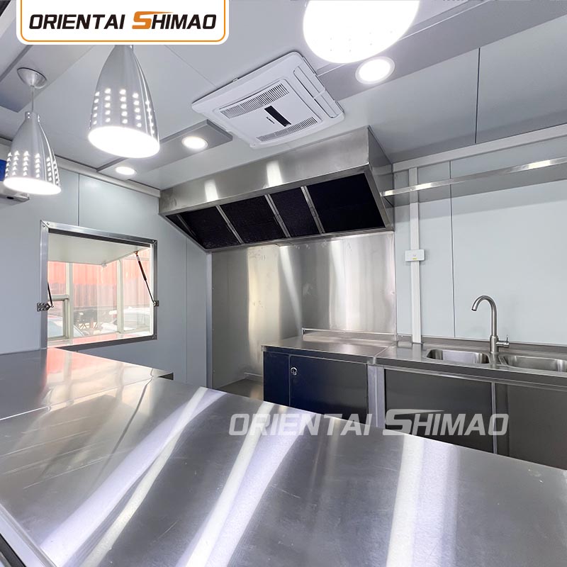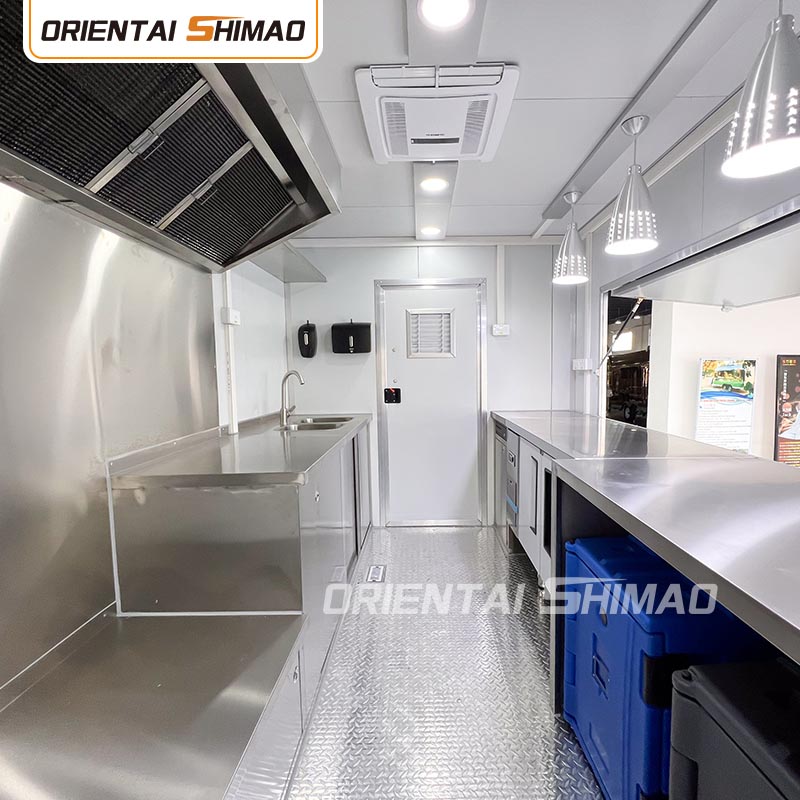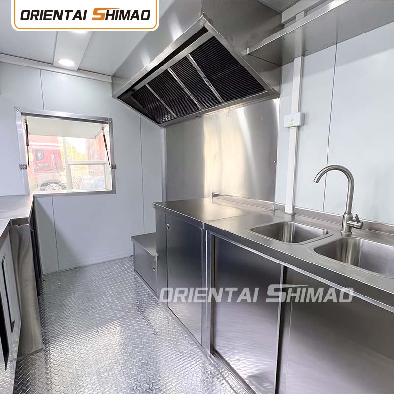 Trelagers golv: Golvet i foodtrucken är designat med tre lager. Det översta lagret är ett aluminiumgolv med halkfri yta för att garantera säkerheten för operatörerna; mellanskiktet är en australiensisk importerad insektssäker träskiva; och bottenskiktet är en glasfiberarmerad plast, som är fukt- och insektssäker och förlänger golvets livslängd.