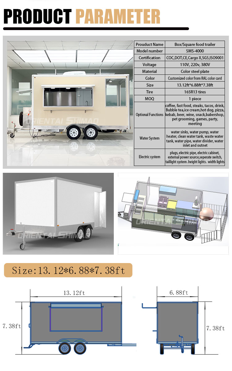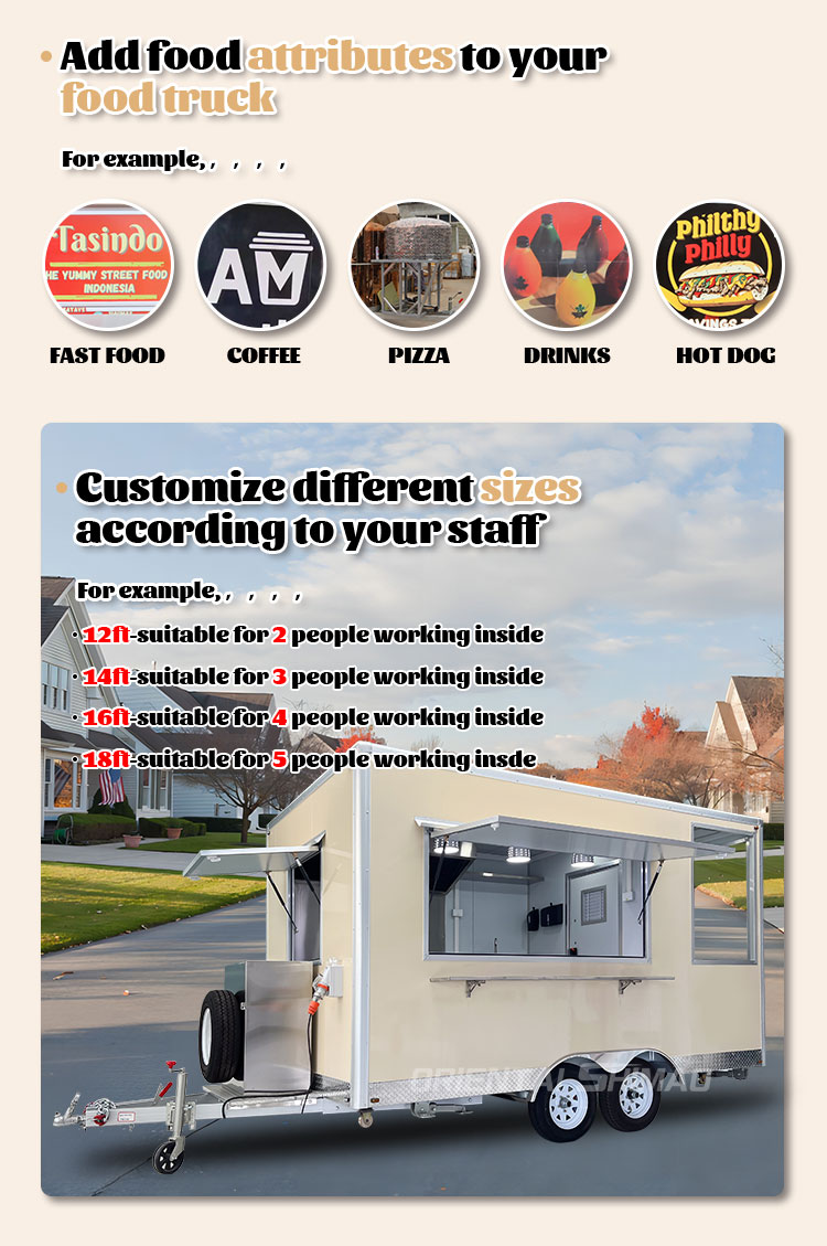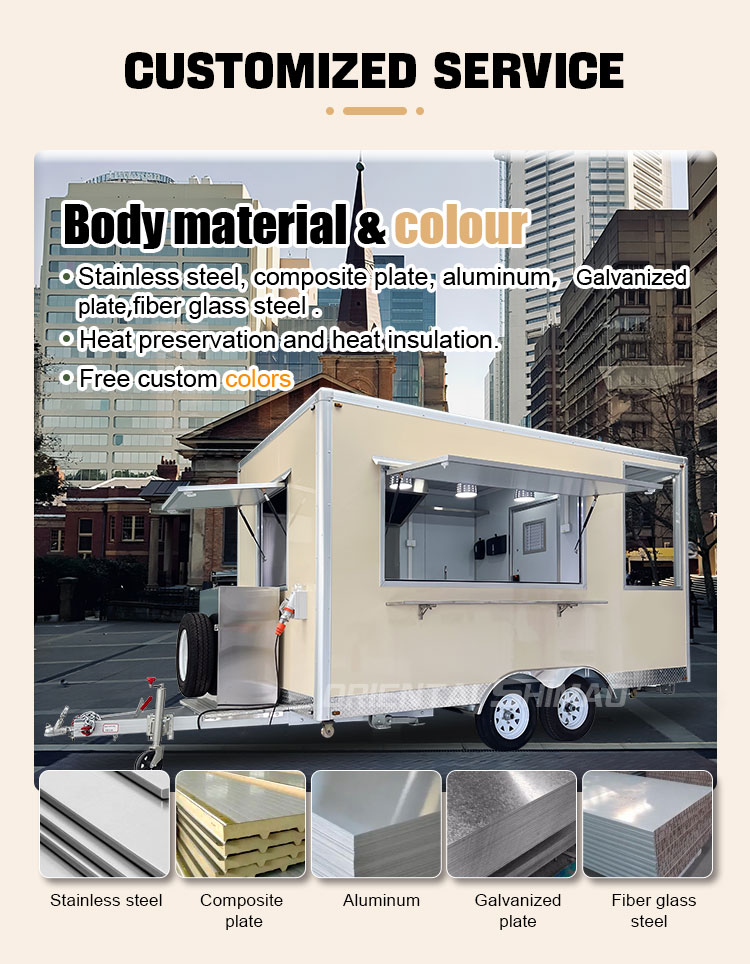 Modellering och stil: utseendemodelleringen och stilen på foodtrucken är en viktig faktor för att locka kunder. Den kan anpassas efter kundernas varumärkesimage, affärsegenskaper eller personliga preferenser, såsom strömlinjeformad design, retrostil, modern enkelhet och så vidare.