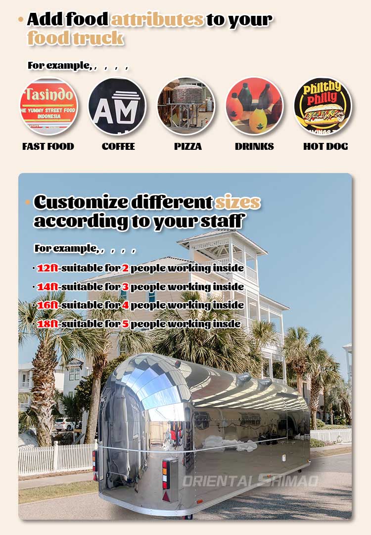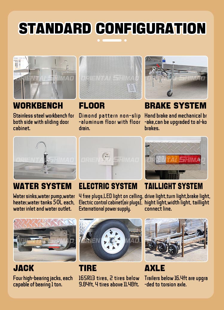 Modellering och stil: utseendemodelleringen och stilen på foodtrucken är en viktig faktor för att locka kunder. Den kan anpassas efter kundernas varumärkesimage, affärsegenskaper eller personliga preferenser, såsom strömlinjeformad design, retrostil, modern enkelhet och så vidare.
