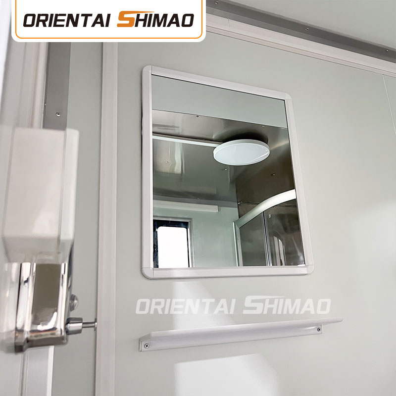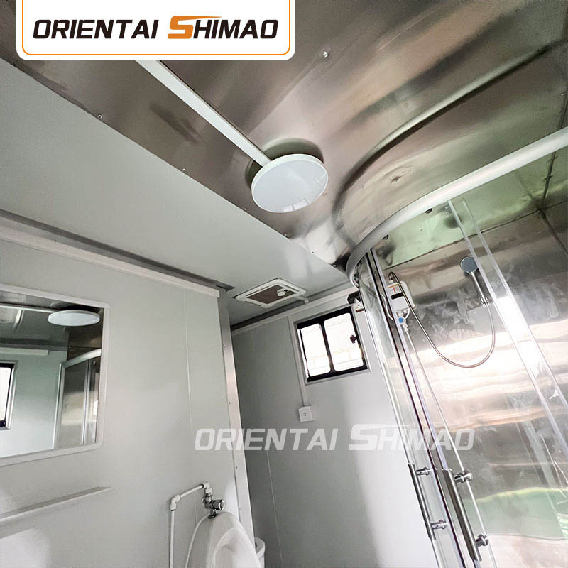 Interiörmaterial: Alla faciliteter inuti bilen är gjorda av miljövänliga material, i linje med internationella hygienstandarder. Väggarna är gjorda av vattentäta och antimögelmaterial, som är lätta att rengöra och underhålla. Golvet är gjort av halkfritt PVC-material, som inte bara är vattentätt och halkfritt, utan också har goda antibakteriella egenskaper för att skydda användarnas säkerhet.
