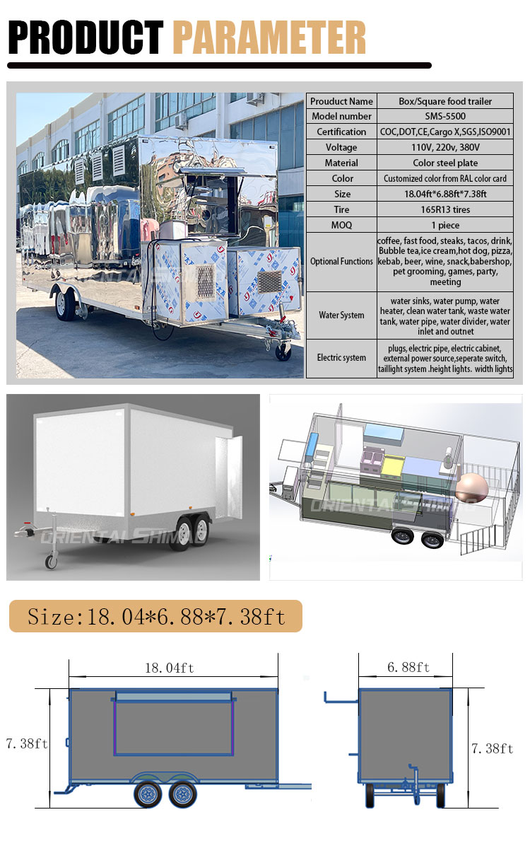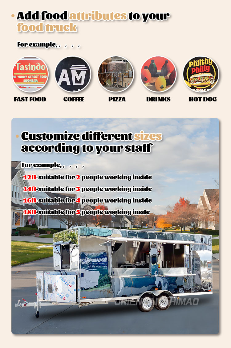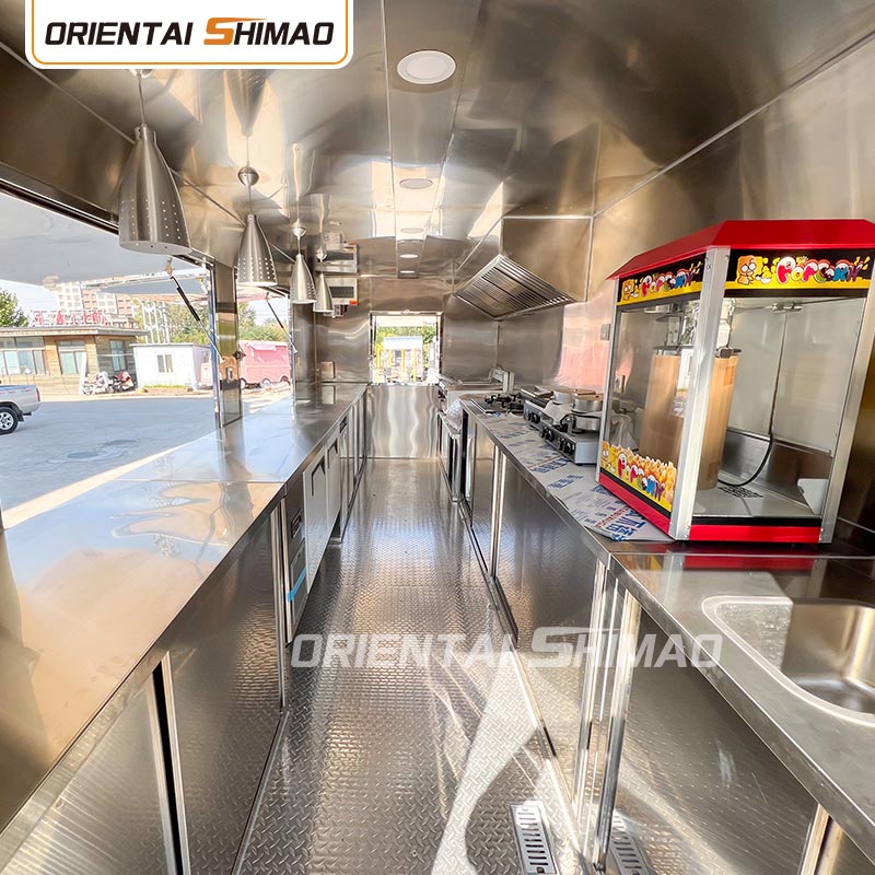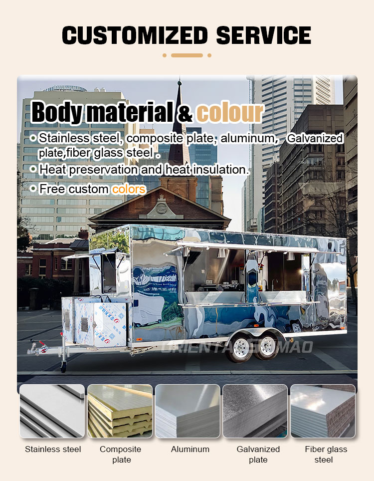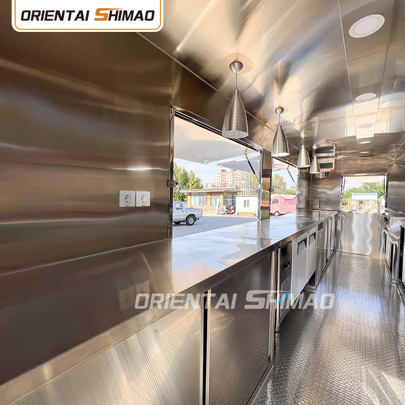 Som huvudmaterial valde vi högkvalitativt 304 rostfritt stål, som är känt för sin utmärkta korrosionsbeständighet och utmärkta hållbarhet, och kan bibehålla stabila prestanda under en mängd olika miljöförhållanden, vilket säkerställer att våra Food Caravans-produkter kan behålla sin utmärkta kvalitet och funktionalitet även på lång sikt och möta en mängd olika utmaningar. 304 rostfritt ståls utmärkta motståndskraft mot korrosion, så att Lastbilen inte är lätt att påverkas av oxidation eller rost, vilket avsevärt förlänger dess livslängd. Den utmärkta korrosionsbeständigheten hos 304 rostfritt stål gör lastbilen mindre mottaglig för oxidation eller rost, vilket avsevärt förlänger deras livslängd.