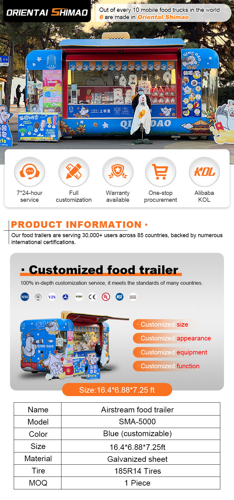 Vi kan erbjuda Food Catering Trailers certifieringar: DOT, CE, SGS, SCI, ISO, COC,