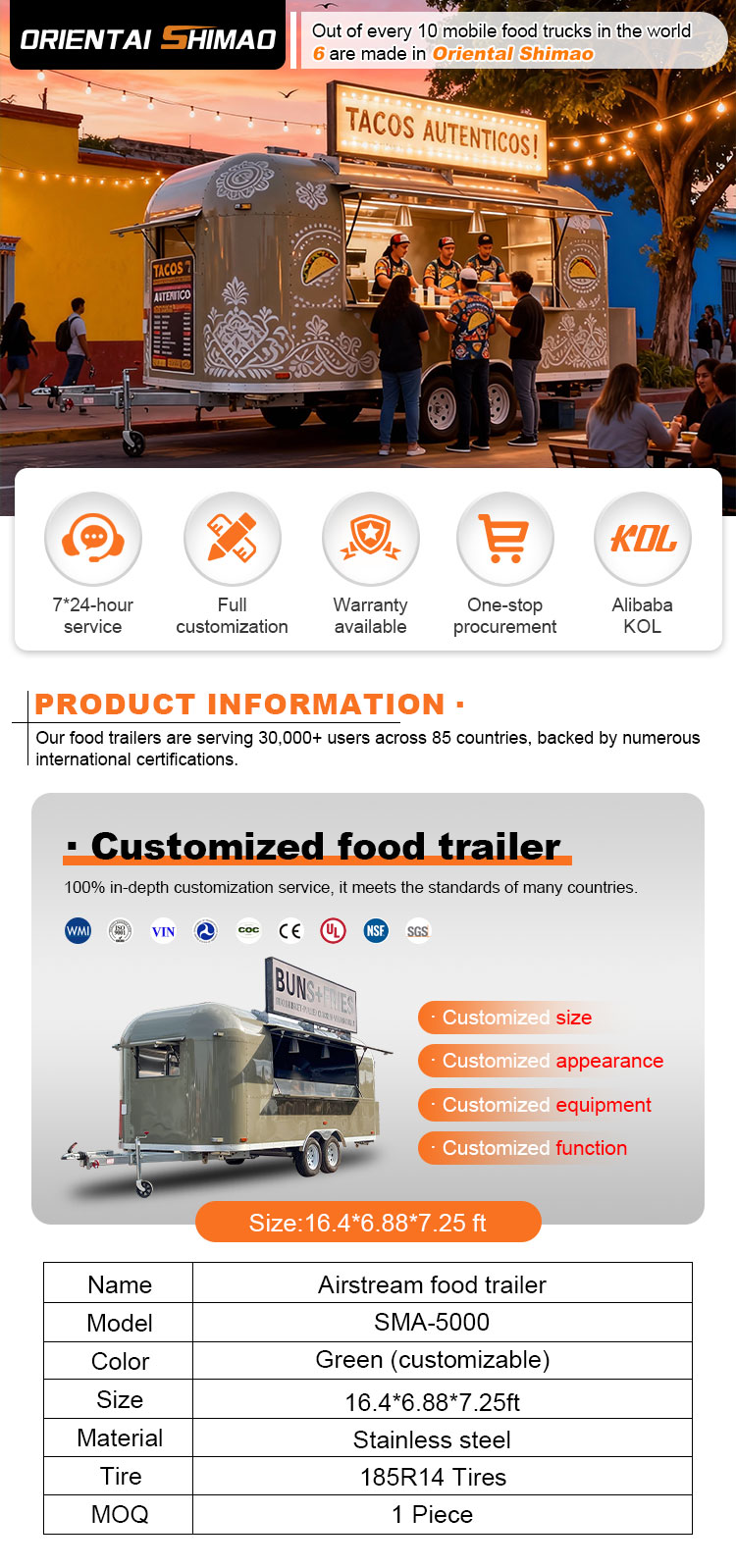 Vi kan erbjuda Food Catering Trailers certifieringar: DOT, CE, SGS, SCI, ISO, COC,