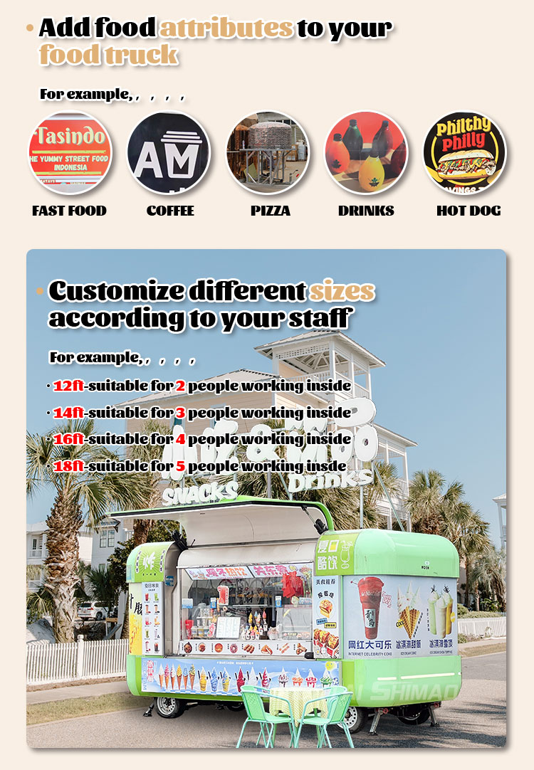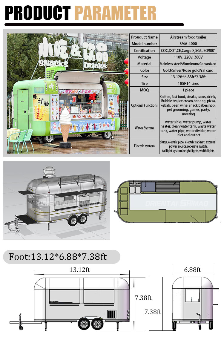 Som huvudmaterial valde vi högkvalitativt 304 rostfritt stål, som är känt för sin utmärkta korrosionsbeständighet och utmärkta hållbarhet, och kan bibehålla stabila prestanda i en mängd olika miljöförhållanden, vilket säkerställer att våra Food Trailer With Full Kitchen-produkter kan behålla sin utmärkta kvalitet och funktionalitet även på lång sikt och möta en mängd olika utmaningar. 304 rostfritt ståls utmärkta motståndskraft mot korrosion, så att Lastbilen inte är lätt att påverkas av oxidation eller rost, vilket avsevärt förlänger dess livslängd. Den utmärkta korrosionsbeständigheten hos 304 rostfritt stål gör lastbilen mindre mottaglig för oxidation eller rost, vilket avsevärt förlänger deras livslängd.