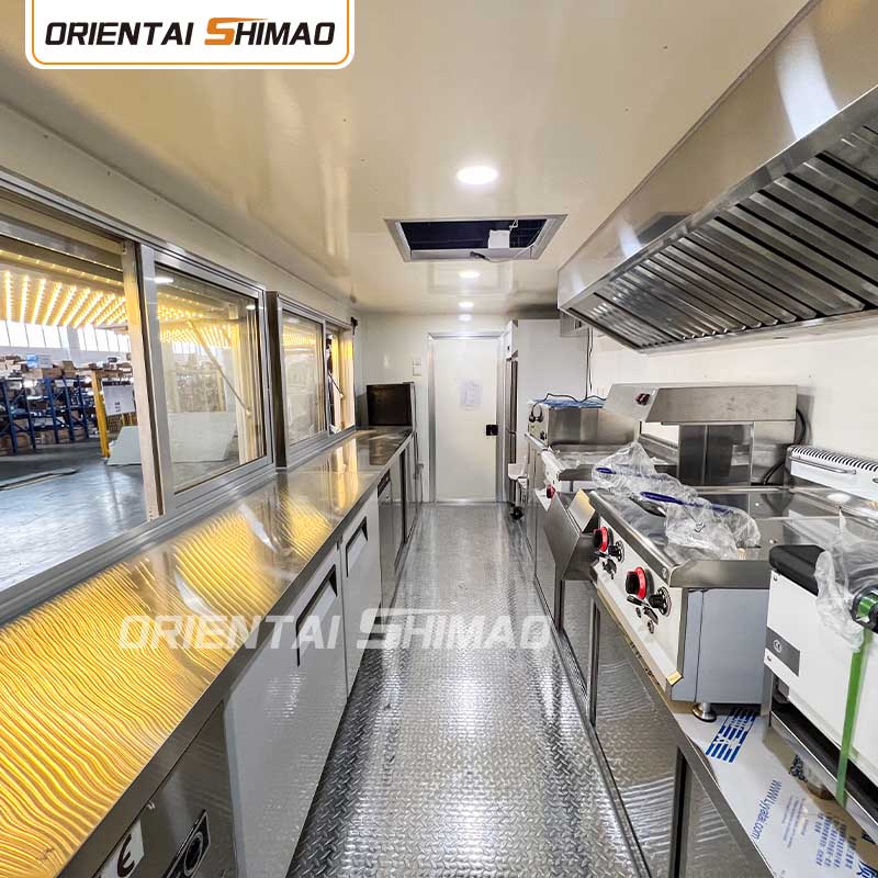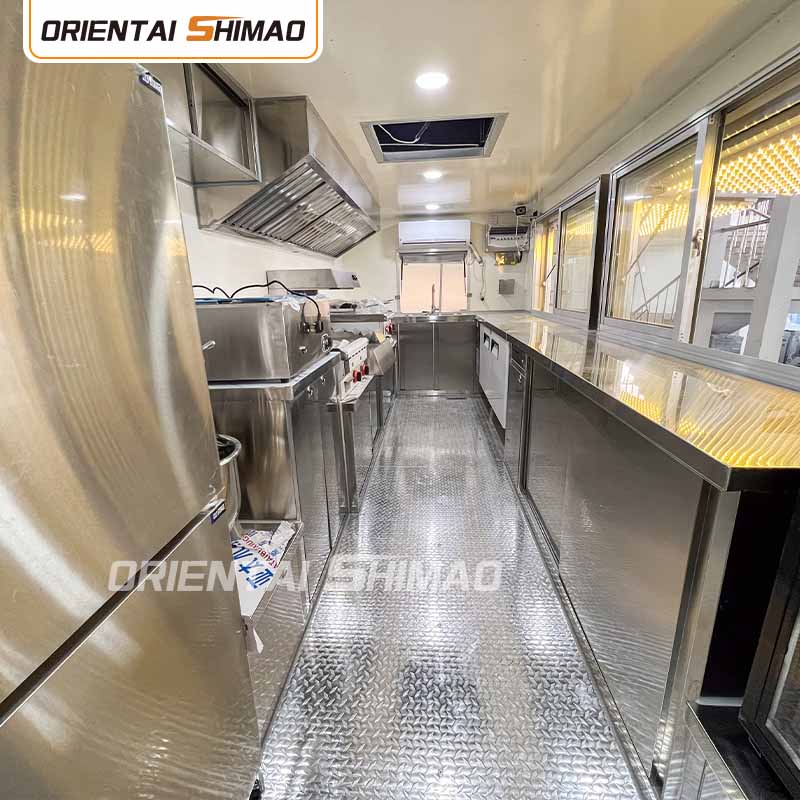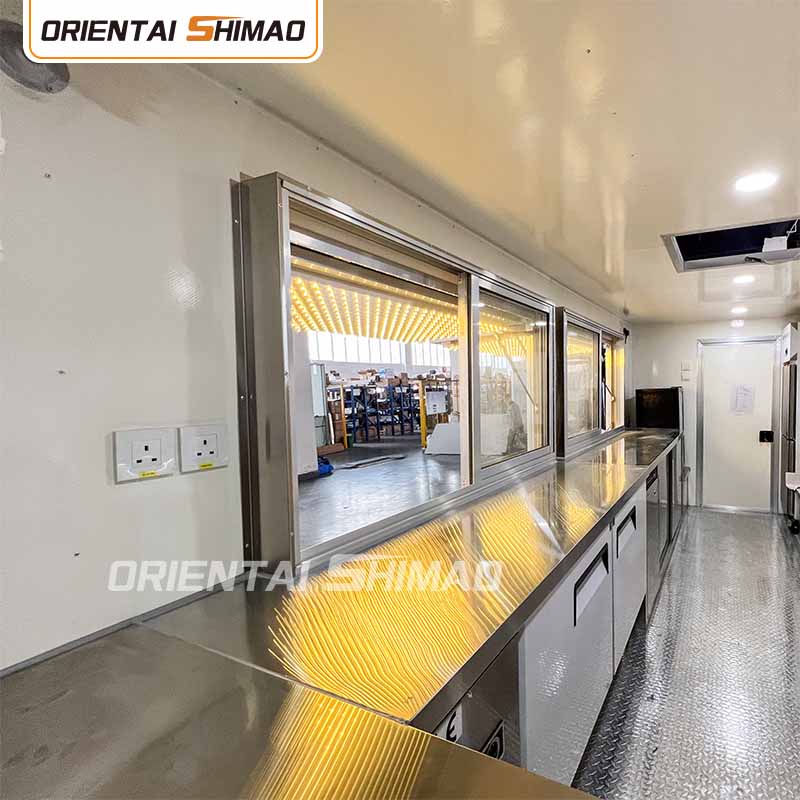 Trelagers golv: Golvet i foodtrucken är designat med tre lager. Det översta lagret är ett aluminiumgolv med halkfri yta för att garantera säkerheten för operatörerna; mellanskiktet är en australiensisk importerad insektssäker träskiva; och bottenskiktet är en glasfiberarmerad plast, som är fukt- och insektssäker och förlänger golvets livslängd.