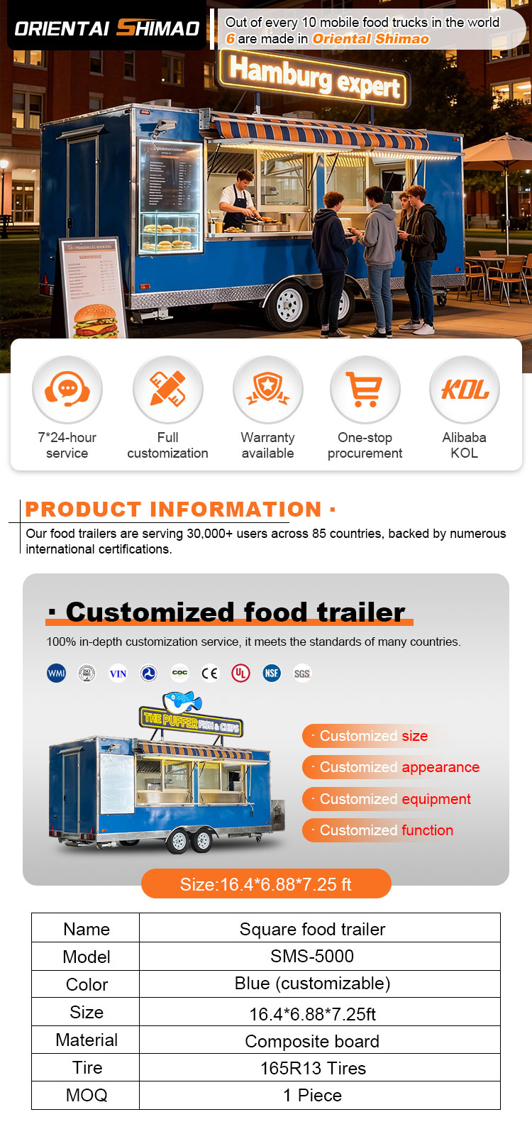 Vi kan erbjuda mobila matvagnar till försäljning Certifieringar: DOT, CE, SGS, SCI, ISO, COC,