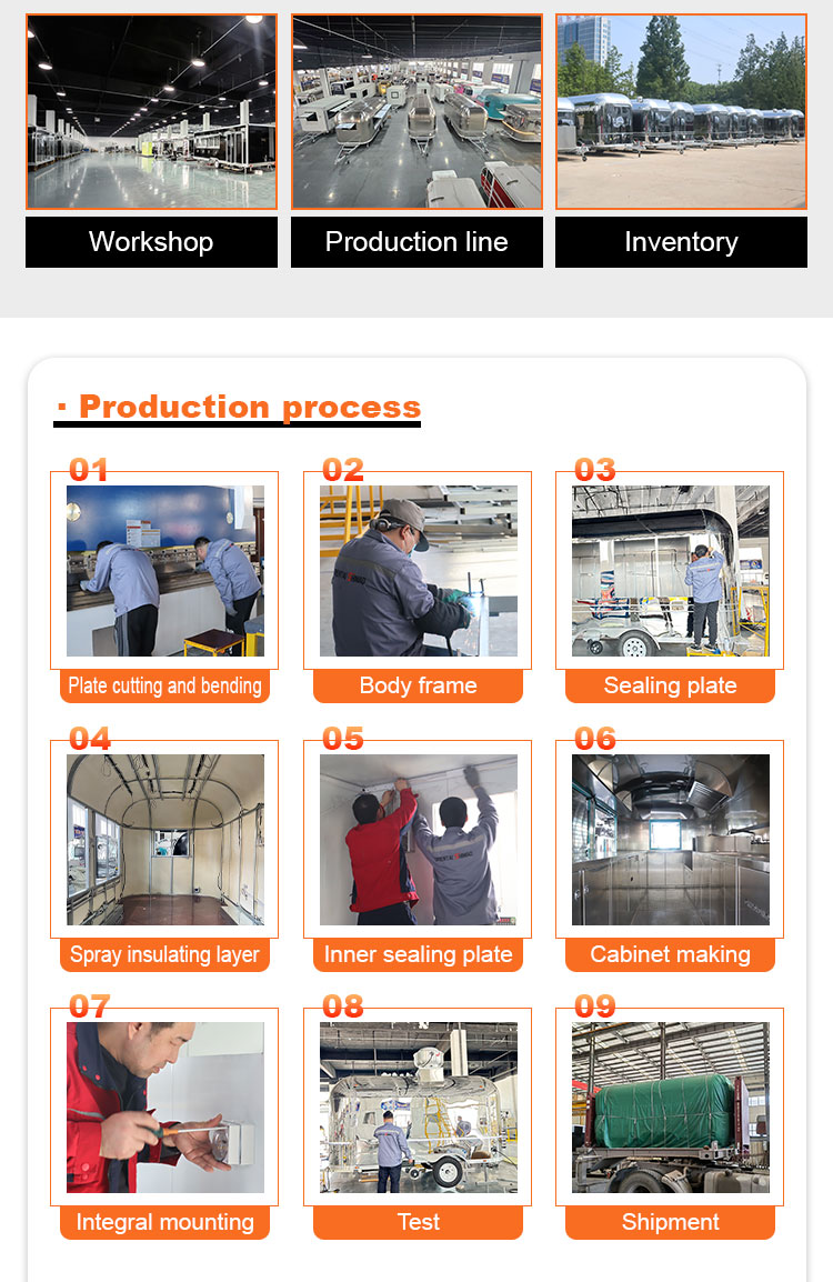 När det gäller ytbehandling har vi anammat en fin spegelpoleringsprocess, som inte bara ger ytan på Food Van en mycket hög glans, utan också gör den motståndskraftig mot fingeravtryck och kladd. Detta innebär att under daglig användning kan Food Vans utseende hållas ljust som nytt under lång tid, vilket minskar behovet av frekvent rengöring och underhåll. Samtidigt gör denna behandling också ytan på Food Van slätare och lättare att utföra dagligt rengörings- och underhållsarbete, vilket ger stor bekvämlighet för användarna.