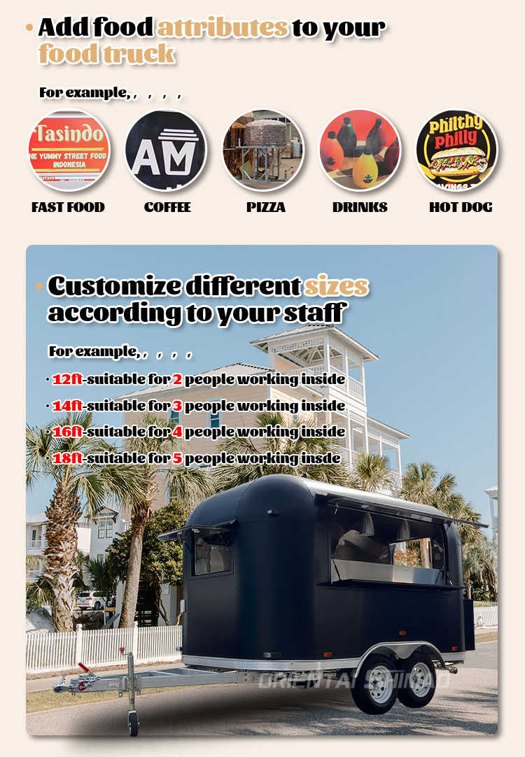 Modellering och stil: utseendemodelleringen och stilen på foodtrucken är en viktig faktor för att locka kunder. Den kan anpassas efter kundernas varumärkesimage, affärsegenskaper eller personliga preferenser, såsom strömlinjeformad design, retrostil, modern enkelhet och så vidare.