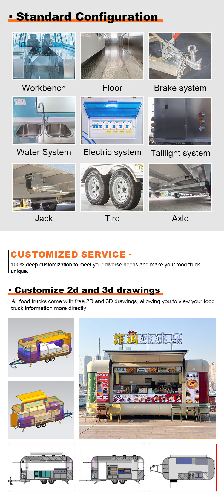 Matvagn Mobilt Kök Kommersiell Restaurangutrustning Catering Elektrisk Mat Trailer Gatubruk Food Truck
