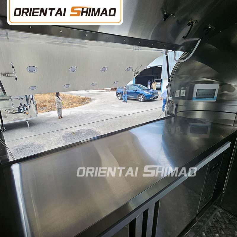 Liten matvagnsbil adopterar rostfritt stål som det inre och externa materialet, vilket i hög grad förbättrar hållbarheten hos matvagnen rostfritt stål har utmärkt korrosionsbeständighet och oxidationsmotstånd, vilket kan upprätthålla utseendet och prestandan under lång tid utan skador. Och rostfritt stål är lätt att rengöra, anti-bakterier, i linje med livsmedelssäkerhet och hygienstandarder, för att skydda hygien och säkerhet för livsmedelsproduktion och försäljning. När det gäller utseende har rostfritt stål ett smidigt, robust och modernt utseende, vilket kan förbättra utseendet på trailernestetiken och öka varumärkesbilden.
