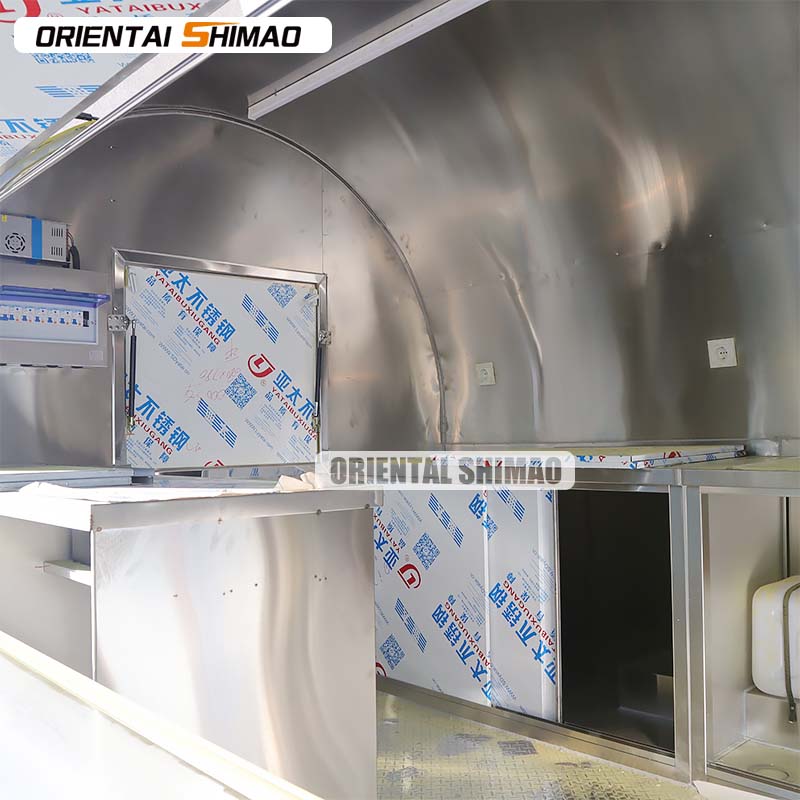 Mångsidighet: För att tillgodose behoven i olika cateringscenarier är en mängd professionell matlagnings- och lagringsutrustning inbyggd i fordonet, allt från matlagningsredskap till lagringsutrymme för ingredienser, vilket kan tillgodose behoven för diversifierad och mycket effektiv cateringoperationer och förbättra driftseffektiviteten, oavsett om det är för site matlagning eller snabbmat.