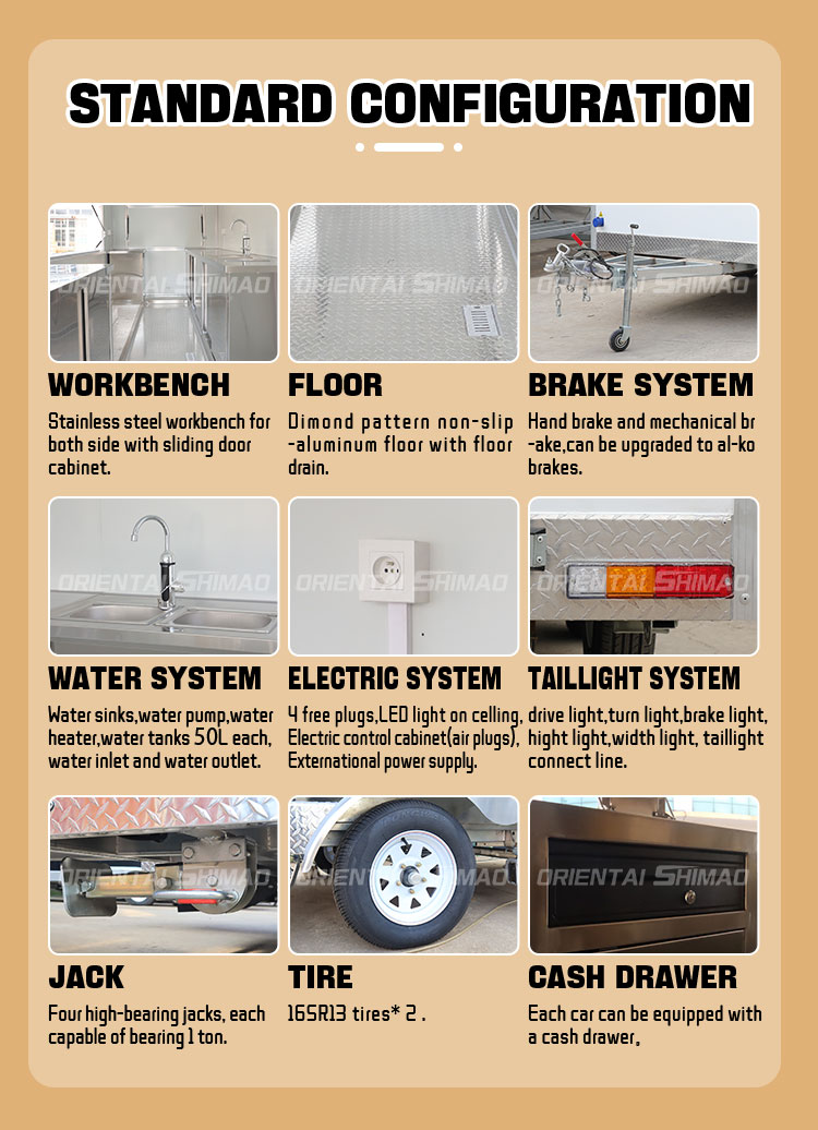 När det gäller tillbehörens material insisterar vi också på val av hög kvalitet, inklusive handtag i rostfritt stål, gångjärn och hjul och andra viktiga komponenter, som alla är gjorda av högkvalitativa material. Denna design säkerställer inte bara den övergripande konsistensen och estetiken i den lilla matvagnen, utan förbättrar också dess hållbarhet och tillförlitlighet ytterligare. Tillbehörens utmärkta prestanda gör det möjligt för den lilla matvagnen att vara mer stabil och smidig i användarprocessen och minskar också underhålls- och ersättningskostnaderna orsakade av skador på tillbehören, vilket ger användarna en mer problemfri och ekonomisk användningsupplevelse.