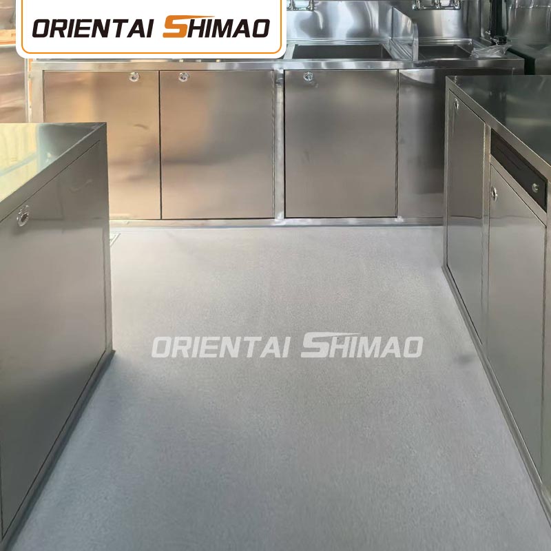 Trelagers golv: Golvet i foodtrucken är designat med tre lager. Det översta lagret är ett aluminiumgolv med halkfri yta för att garantera säkerheten för operatörerna; mellanskiktet är en australiensisk importerad insektssäker träskiva; och bottenskiktet är en glasfiberarmerad plast, som är fukt- och insektssäker och förlänger golvets livslängd.