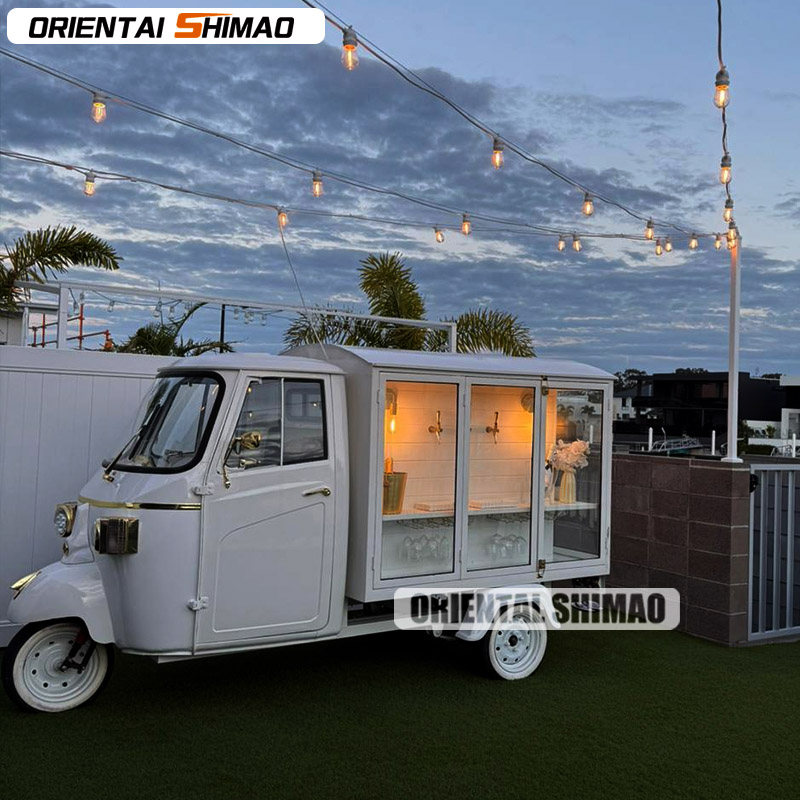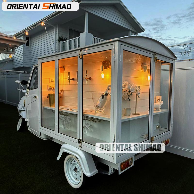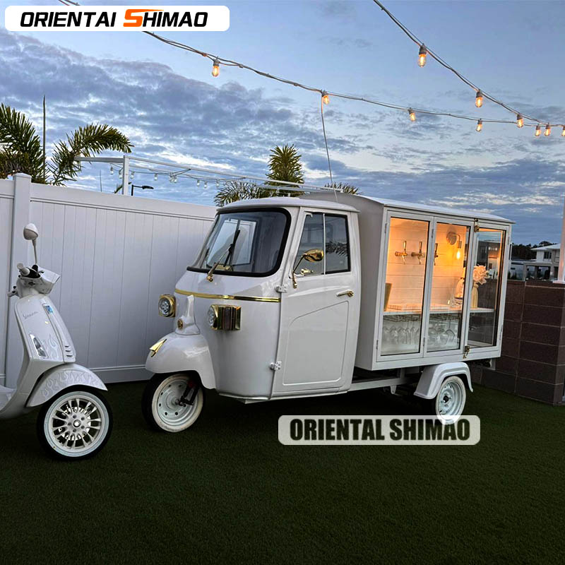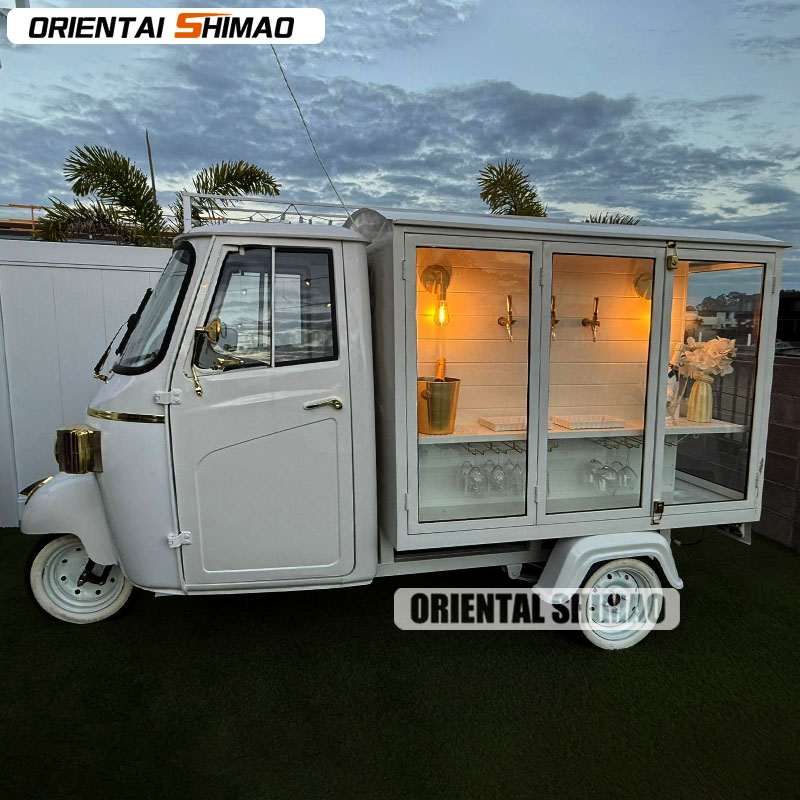 2. Tricycle Trailer Truck kan anpassas logotypklistermärke och LED Round Light, LED Strip Light, kan också anpassas ölkeg och knacka på enligt ditt företag.