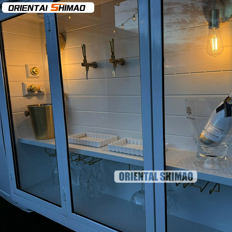 TRICALE TRAILER TRUCK, extern tillverkad av galvaniserat ark, allt skåp tillverkat av trä, ren handgjord anpassning. Kranar gjorda av 304 ss, och du kan välja kranfärg, vanligtvis guldfärg.